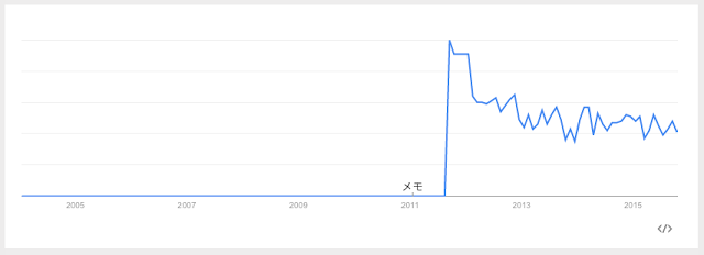 検索された数の絶対値を知ることができるわけではなく、あくまで検索数の最も多かったピーク時を100として、そこから比較し他期間の検索数をグラフ化しているものです。