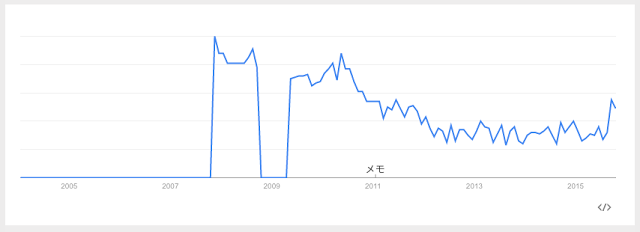 基本的にGoogleトレンドは、検索キーワードの数がひとつ指標になっているので、新しい音楽ジャンル(=新しい言葉)が出てくると検索される数も増えますので、そういう意味では、「EDM」というジャンル(=言葉)は、すでに多くの人の目や耳に触れ、日本においてもすっかり認知されてきているとも言えますね。