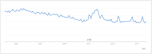 今回は2004年〜2015年までの間に、「ロック 音楽」や「ポップ 音楽」といったワードがどの程度検索されたか調べてみました。