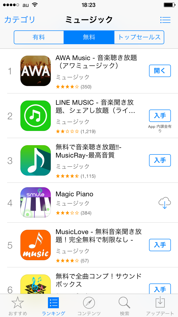 こちらは変わらずLINE MUSICが1位のままで、AWAが2位です。でも、きっとここのランキングも変わりそうですね。