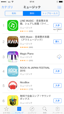 あくまで推測ですが、これは「AWA」と「LINE MUSIC」のダウンロード数にかなりの差があるのか。。?